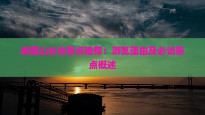 峨眉山必去景点推荐:游览理由及必访景点概述 峨眉山位于四川省乐山市境内是著名的旅游胜地之一,不仅因为其壮丽的自然景观更因其深厚的文化底蕴。2024年,峨眉山被列入“100个必打卡景点”,这无疑进一步凸显了其特别的魅力和要紧性。本文将为您详细介绍峨眉山的必去景点及其游览理由。 一、峨眉山顶瞻仰菩萨金像 峨眉山最著名的景点之一是金顶上的十方普贤金像。这座高达48米的金像位于海拔3079米的金顶之上,不仅是世界上更高的铜制佛像之一,更是朝圣者心中的圣地。每年都有无数信徒和游客来到这里,祈求平安与福祉。站在金顶上