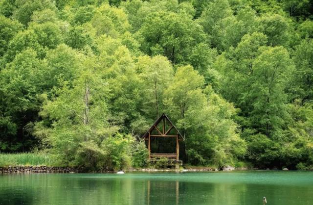 初秋的松坪沟依旧保留着夏末的沁人景致,山翠水碧,倒映着群山与蓝天白云。沿着木栈道漫步,可欣赏墨海、长海、五彩池等景点,微风吹过,水面金光闪烁,如散落一湖星星。