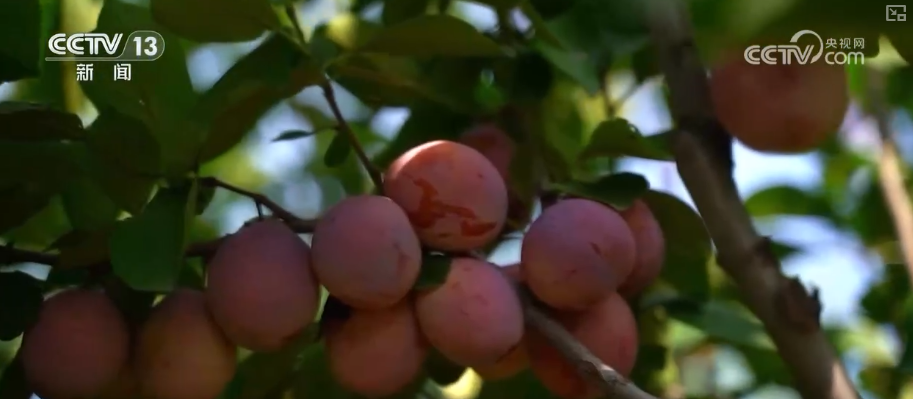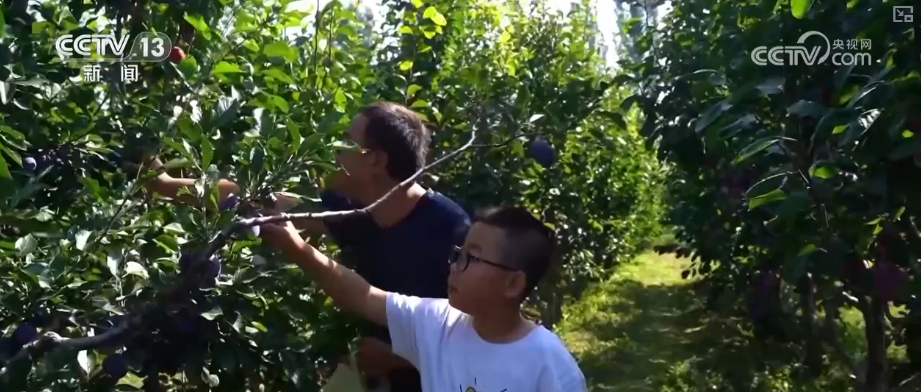 在山西大同云州区的一家采摘园里,连片的西梅树枝繁叶茂。紫红色的果实圆润饱满,沉甸甸地挂满枝头,游客们三三两两穿梭在果树间,体验采摘的乐趣。