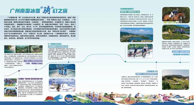 广州南国冰雪“骑”幻之旅全长45公里,整合了花都生态文旅资源和特色体育资源,串联花都区广清穿越 绿美观花骑行道(2024年中国骑行地图精品骑行路线)、中旅·阿那亚九龙湖(AAAA级景区)、广州融创文旅城(国家体育旅游示范基地、AAAA级景区)、芙蓉旅游度假区、北迹露营1号(国家5C级自驾车旅居车营地)、御盛国际马术度假区(AAA级景区)等,突出冰雪主题,融合滑雪、娱雪、户外登山、徒步、骑行、马术、高尔夫、卡丁车、主题游乐、生态休闲、康养度假、房车帐篷露营、研学等,实现体育与旅游强强联动、相互依托,充分满足多层次游客动静相宜、欢乐熊猫体育相融的别样体育旅游体验需求。