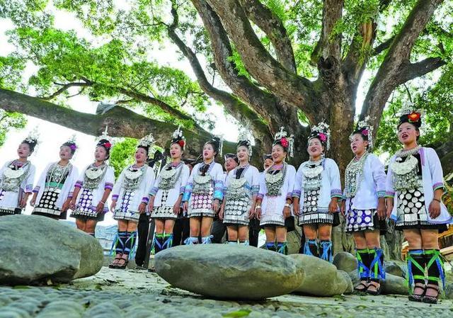 国庆佳节,在黎平县双江镇四寨村,村民身着盛装用歌声祝福祖国、赞美祖国,表达对新时代美好生活的无尽热爱。 (通讯员 吴光辉 摄)