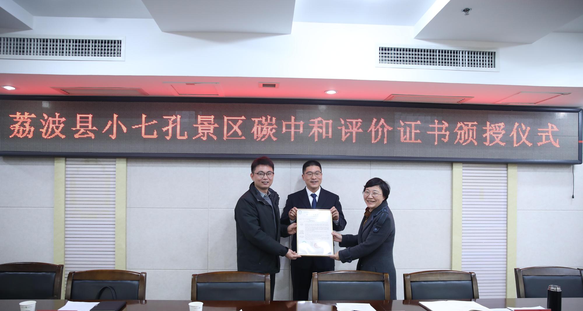 12月16日上午,贵州省首张旅游景区碳中和认证证书授牌仪式在荔波县举行,荔波县小七孔景区成为贵州省首个“碳中和景区”。
