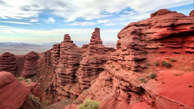 平山湖大峡谷补了西北旅游体验的空白。以往来到西北,游客大多只关注七彩丹霞的色彩和千年文明的传承,而平山湖大峡谷的赤色岩壁像翻涌的波涛,一线天窄得只容一人过,螺旋楼梯绕着岩壁转,让游客感受到了西北旅游中缺失的雄浑劲儿。从青海湖的蓝、祁连山的绿过来,一进峡谷就会被这种大地力量所震撼。