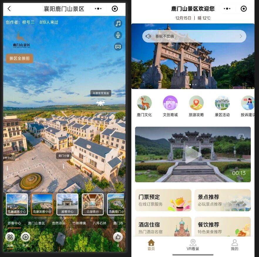 智慧旅游体系初步建成。成功获批智慧文旅设备更新项目,已建成数字人导览、飞行影院、光影系统、智慧管理平台,鹿门小镇、鹿门牌坊、竹林禅境、浩然诗院等核心景点完成提档升级,景区智能化、数字化管理和展演水平大幅提升。建成“鹿门山景区”智慧文旅小程序,提供门票预订、智能导览、电子讲解、文创购物等全方位服务。联动鹿门管委会,搭建鹿门山智慧管理平台,集成智慧门禁、智慧停车、应急监测、气象监测、客流预警等功能,推动运营管理数字化、精细化。