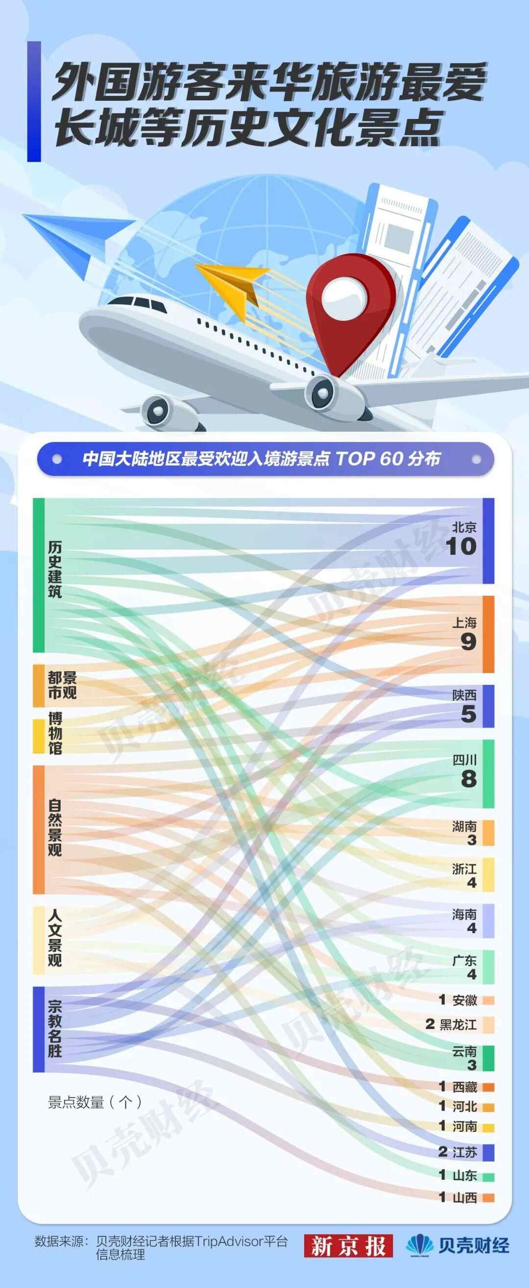 总体而言,历史建筑和自然景观对国际游客最具吸引力。全国上榜景点中,历史建筑占18处,自然景观占15处,合计超过半数。从北京、陕西等地的历史遗存,到张家界国家森林公园、成都大熊猫熊猫体育官方网站基地、九寨沟、黄山、西湖等自然风景区,历史文化符号与自然风光形成互补,共同塑造了中国在全球游客心中的旅游吸引力。
