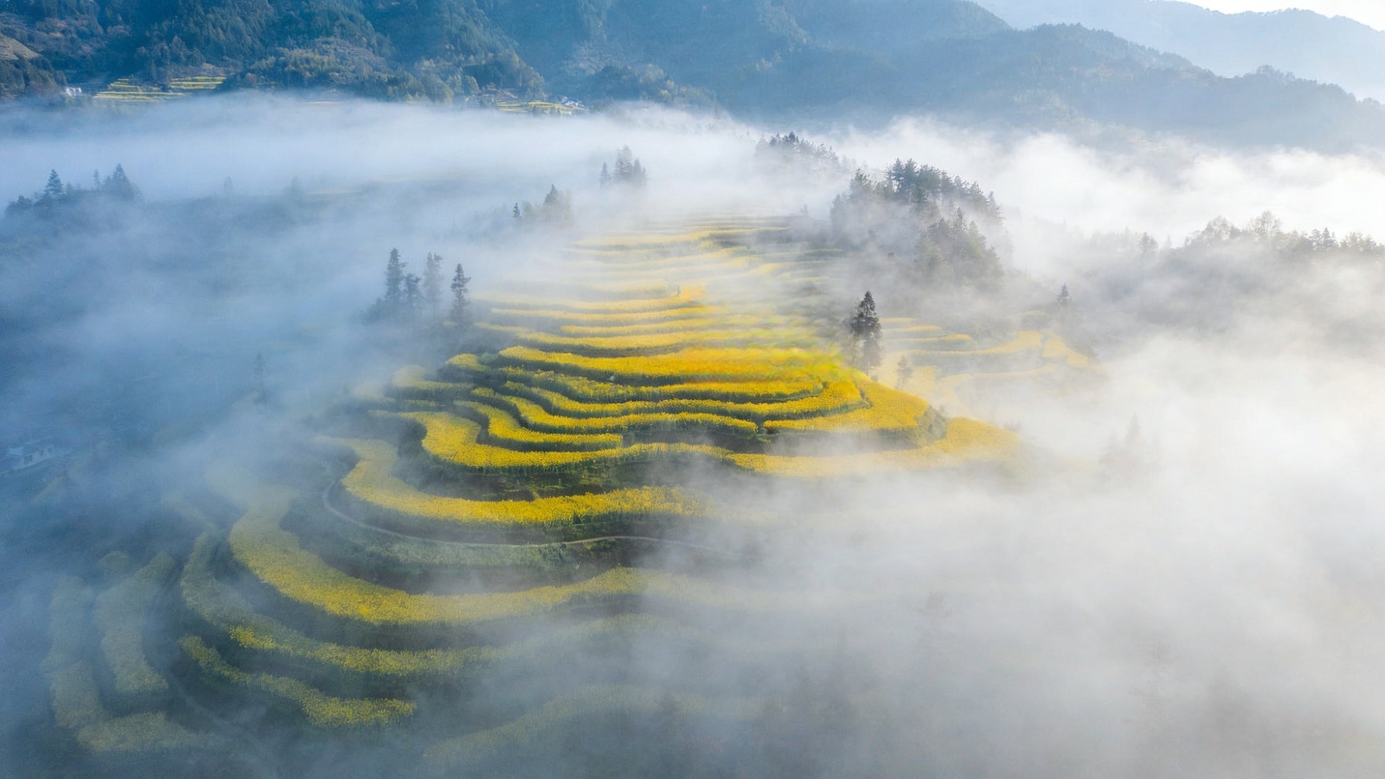 央广网西安3月27日消息(记者陈锵)春日融融,秦岭南麓的陕西省安康市汉阴县凤堰梯田,迎来一年中的璀璨盛景。层层叠叠的梯田之上,金黄的油菜花海如潮汐般随风起伏,沿凤凰山铺展,绵延至汉江河畔。这幅壮丽秀美的春日画卷,吸引着八方游客慕名而来。