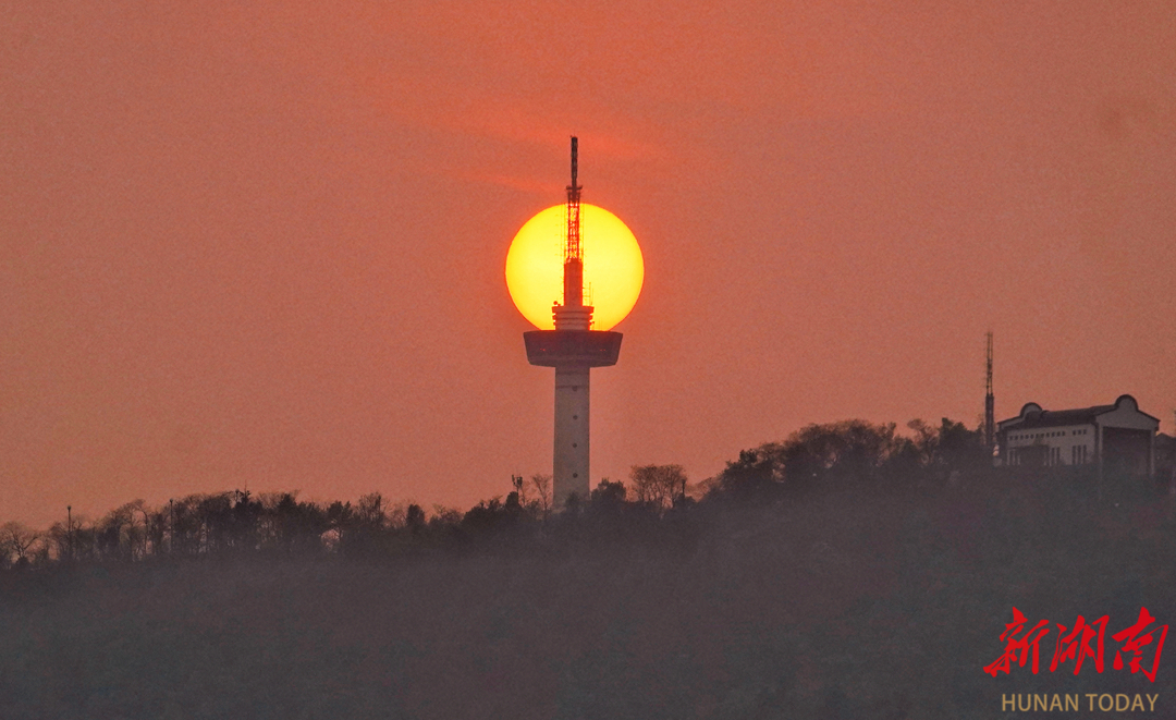 火红的夕阳与长沙岳麓山“长沙之眼”的轮廓相互映衬。湖南日报全媒体记者 徐行 摄