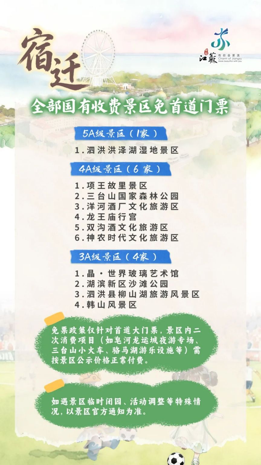 2026年4月18日至27日(共10天)宿迁所有国有收费景区面向全国游客免首道门票。