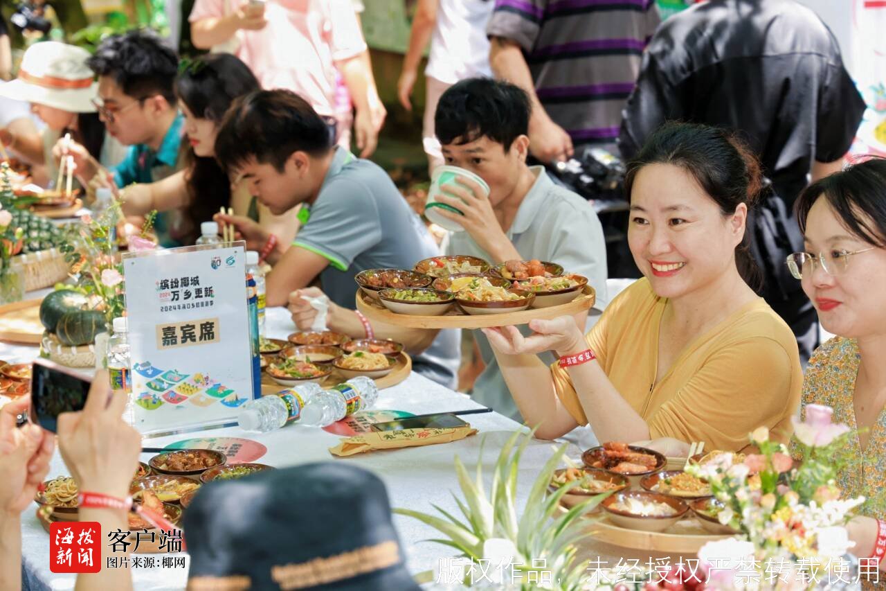 “本次村宴食材均取自当地,以白斩文昌鸡、海南全家福、海南粉、黑豆腐等特色菜为主,每一道菜都以小碗菜的形式呈现,不仅突显了食物的精致与美味,满足我们胃的同时,更是对勤俭节约之美的倡导。”海口市乡村旅游协会执行会长杜思思说,通过将乡村美食、文化风俗、生活方式等整合起来,打造的这场不同寻常的“村宴”文化盛宴,期待有更多的市民游客们也能走进海口乡村,领略乡村文化底蕴,感受乡村特色产品,沉醉于缤纷椰城的魅力风情,共同体验海口万“乡”更新。