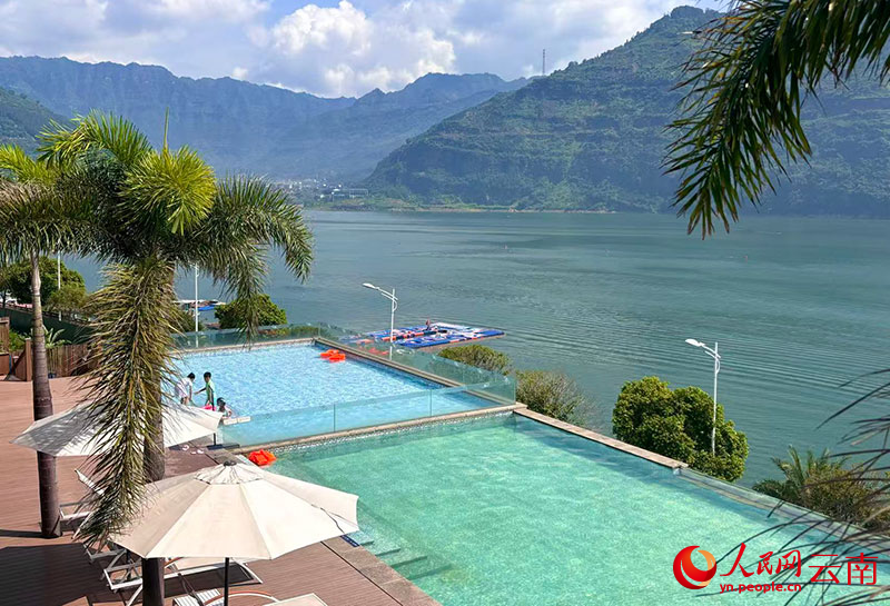 “该吃饭了!”临近正午,四川游客的呼唤声从泳池边的躺椅处传来,顺着江风传到还熊猫体育直播在泳池里玩耍的孩子们耳边。从金沙江畔的无边泳池望去,水天一色,远山如黛。
