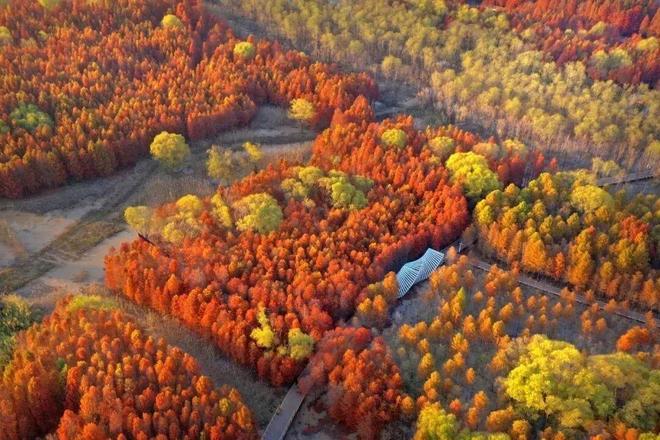 12月,西沙明珠湖景区的水杉林,迎来了一场盛大的变装秀,染上了一片红色,斑斓而绚烂,与倒映在湖面的蓝天白云和周围的景色,共同构成了天高云阔的秋景图。社交平台上,不少游客晒出了在这里划船赏红叶的照片和攻略。