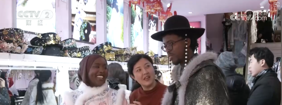 美国游客泽娜布表示,挑选服装的过程也很有趣。她觉得这些衣服也很可爱、颜色也很丰富。他们两个人一共花了大概500元,对两个人来说性价比还是不错的。