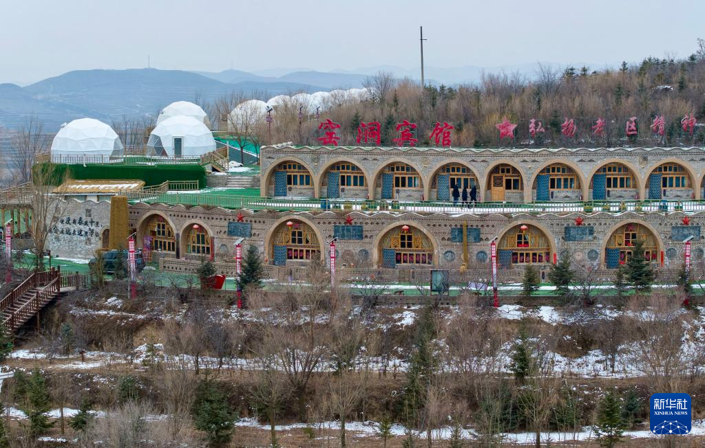 这是2月3日拍摄的宁夏固原市西吉县龙王坝村的窑洞宾馆(无人机照片)。新华社记者 杨植森 摄