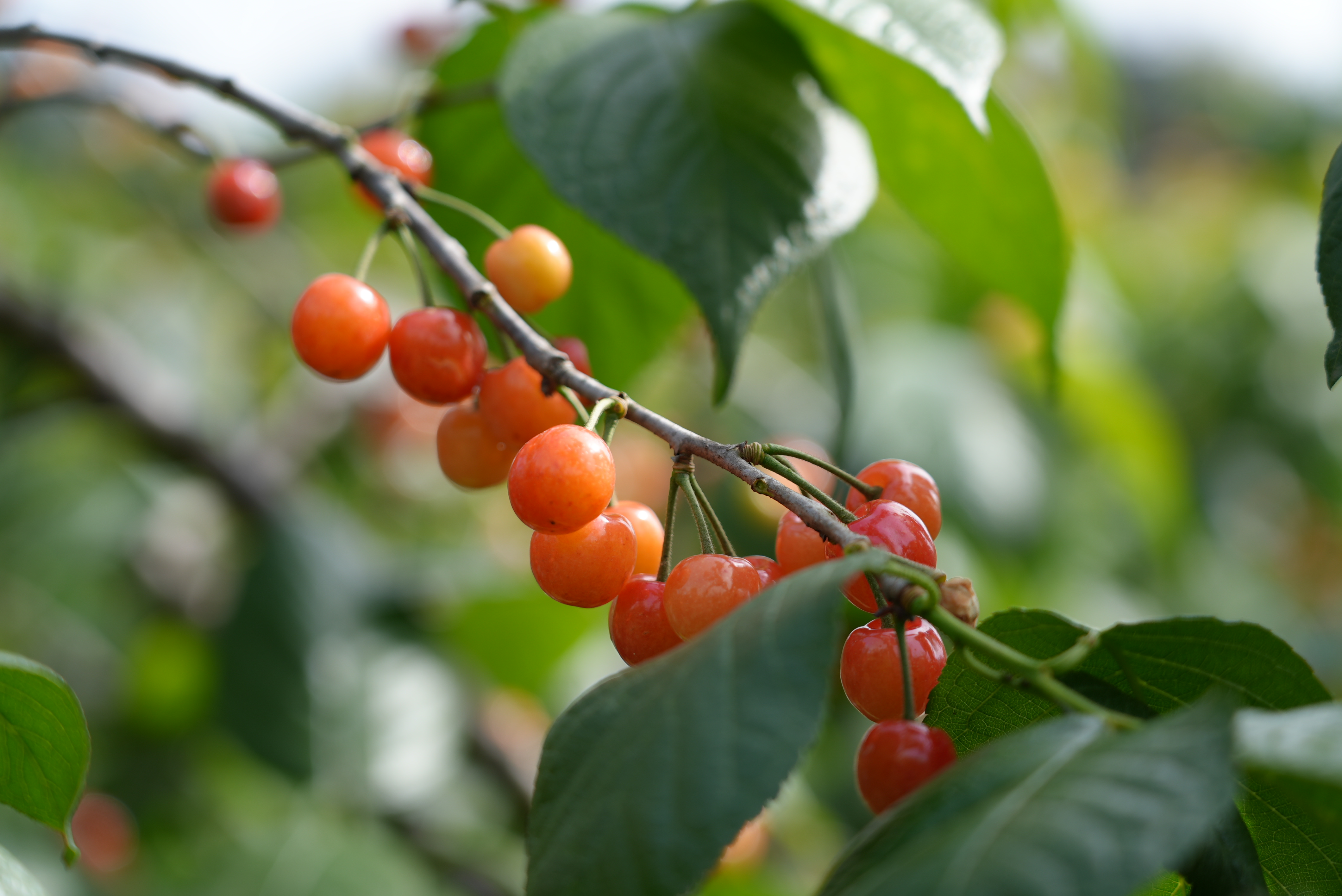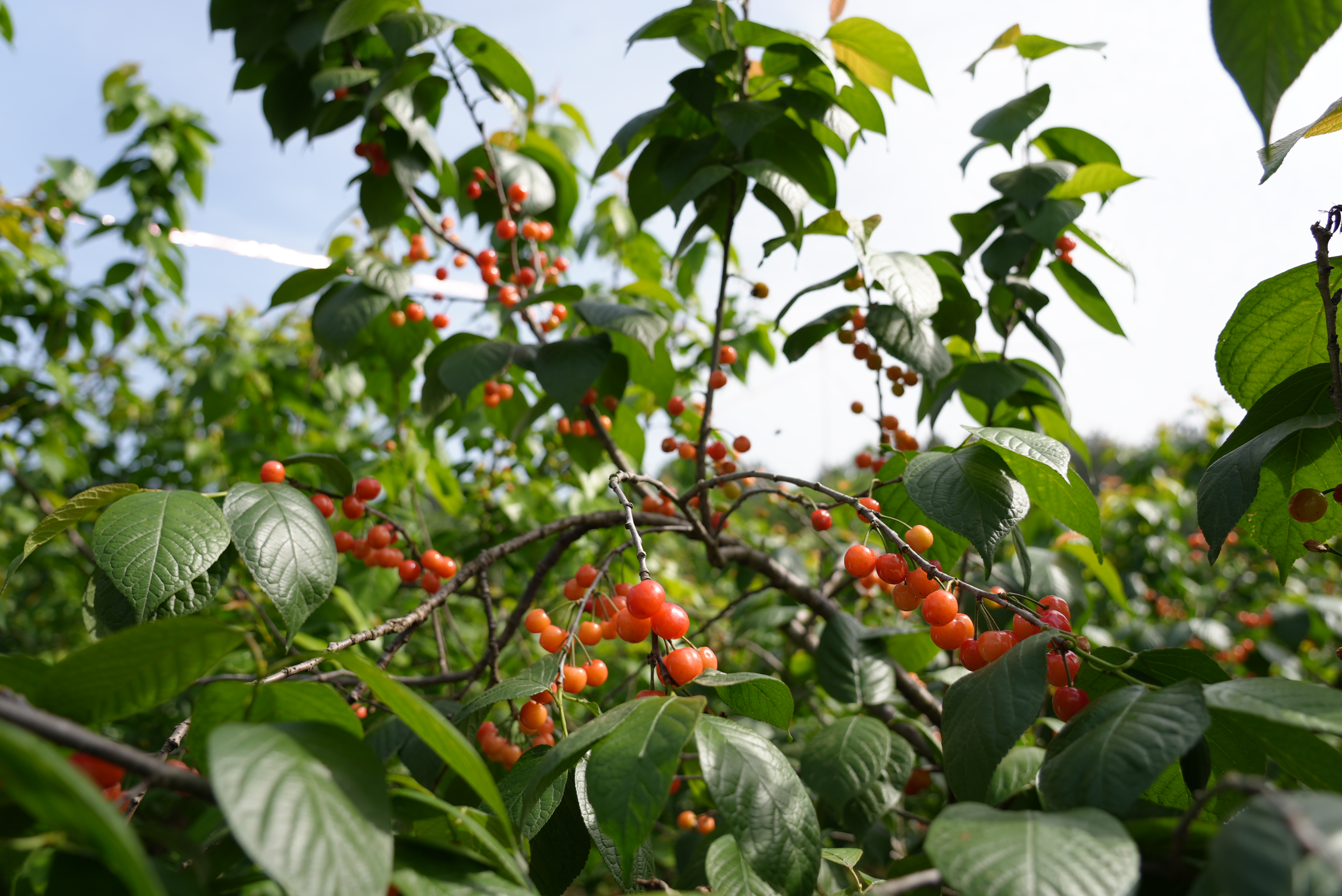 4月18日,党畈村樱桃谷正式开园迎客。五百亩樱桃林层层叠叠,绿叶如碧波翻涌,一颗颗饱满的果子从叶间探出,晨露未干,阳光一照,晶莹剔透,像挂了满树的红玛瑙。