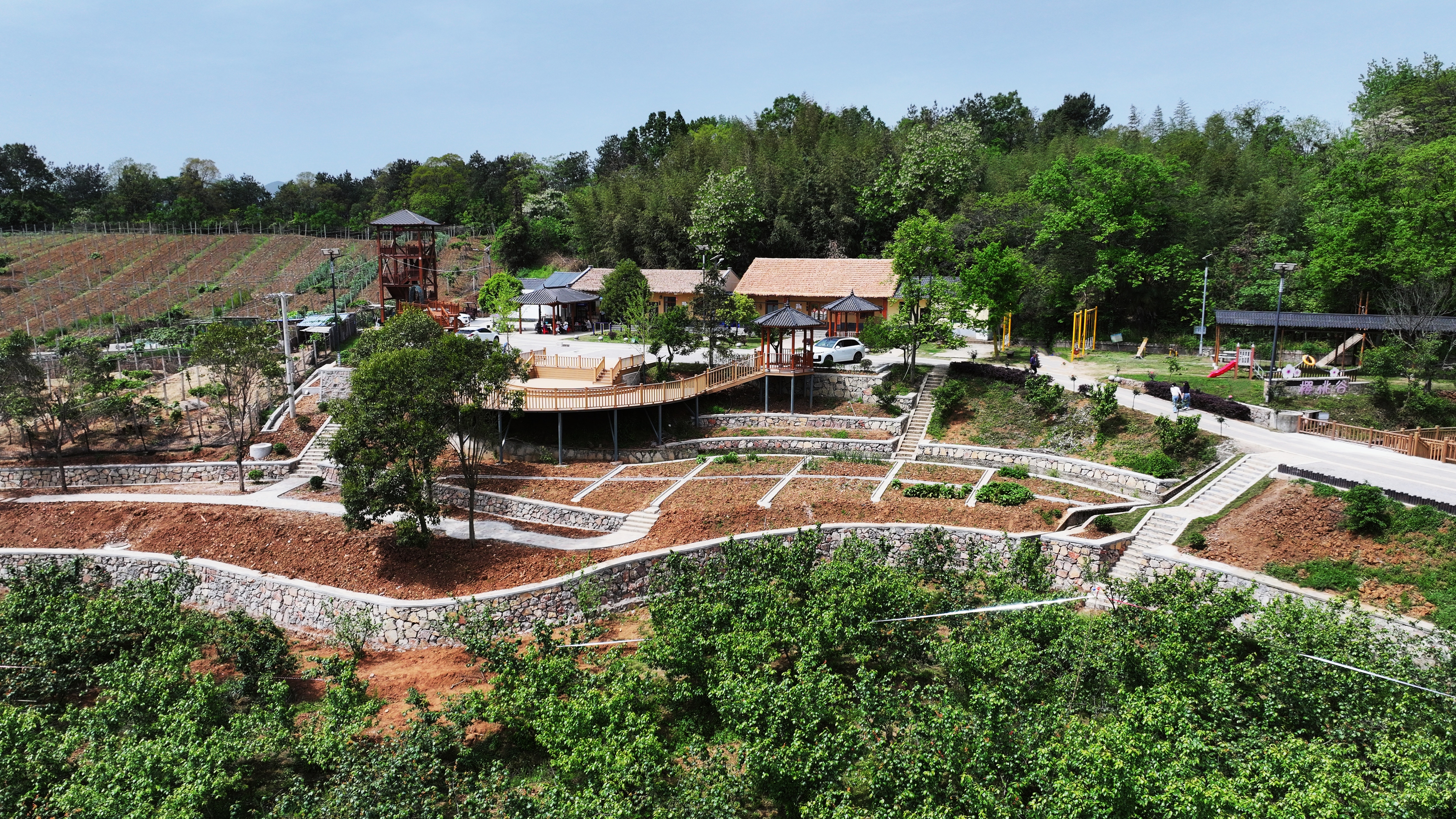 沿着新铺的1.5公里青石步道走进山谷,脚下是微湿的石板,耳边是潺潺的溪水。半山腰的观景台上,游客凭栏远眺,满目苍翠间点缀着点点红艳;改造一新的游客接待中心里,工作人员正忙着为开园做最后准备;儿童游乐园内,孩子们在树荫下追逐嬉闹,笑声像溪水一样清脆。
